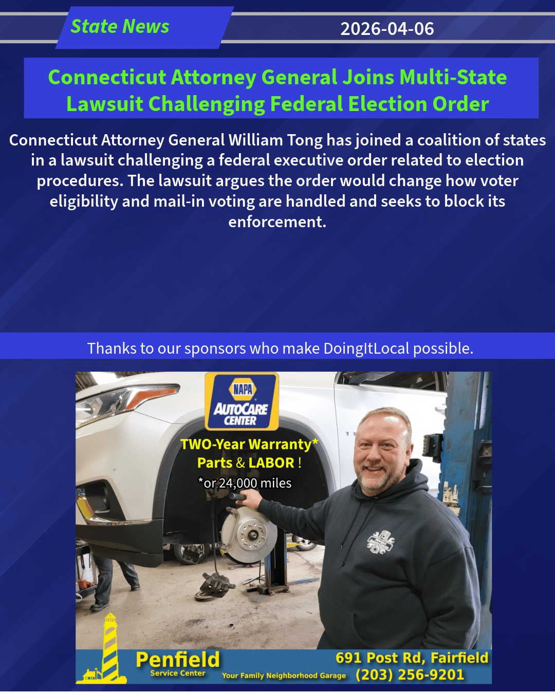 Connecticut AG Joins Suit Against Federal Election Order