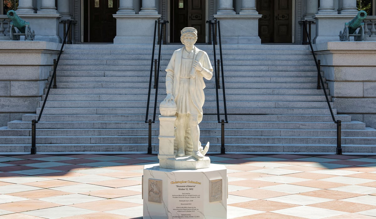 The White House boldly installs a replica Christopher Columbus statue on federal grounds, pieced together from a monument toppled in Baltimore during the 2020 riots, right outside the Eisenhower Executive Office Building. This move honors Italian American heritage and pushes back against the woke mob's erasure of history, signaling President Trump's commitment to defending America's true past from radical revisionists. Read more about this...